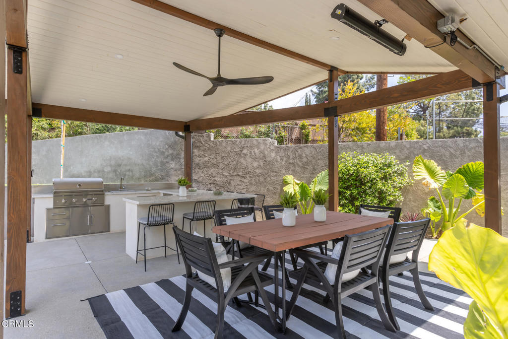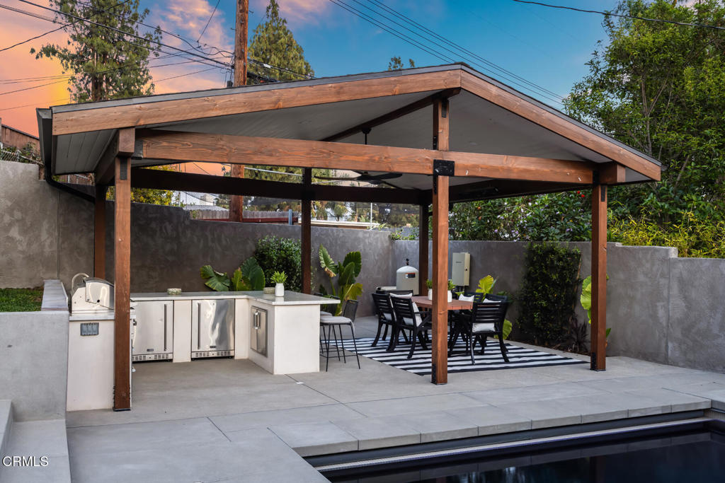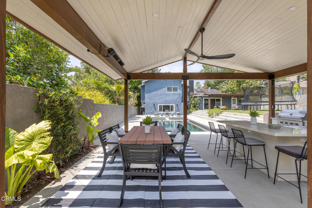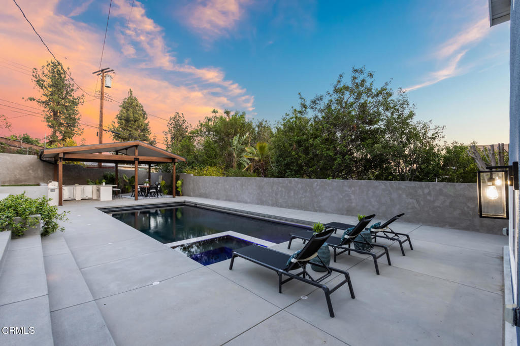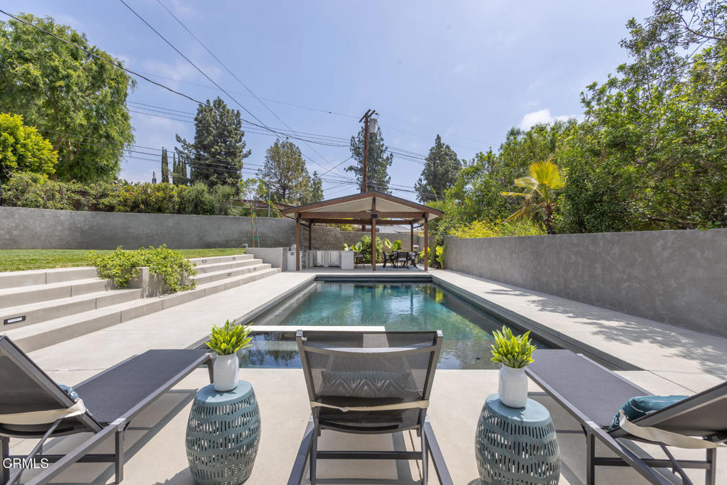 Located in the coveted Lake View Terrace neighborhood, 11442 Brainard Ave is a beautifully curated home that delivers exceptional living inside and out. Just minutes from top-rated schools, local parks, and equestrian trails, this residence seamlessly blends elegance, space, and lifestyle.Inside, the open-concept layout allows the updated kitchen, living room, and dining room to flow together while maintaining their own distinct spaces, striking the perfect balance between openness and definition. A versatile bonus room offers endless possibilities as a home office, gym, or creative studio, while the downstairs family room provides a cozy retreat, ideal for movie nights or relaxed gatherings.Step outside to a private, resort-style backyard featuring a sparkling Pebble Tec pool with color-changing lighting, a large Baja shelf, a spa, and an automatic cover for added convenience and safety. An expansive covered cabana with a built-in outdoor kitchen and grill creates an ideal space for entertaining, surrounded by lush landscaping, a spacious grassy backyard, and a fenced front yard for additional outdoor enjoyment.All three bedrooms are thoughtfully situated on one wing of the home, offering updated finishes and ample storage. The primary suite is a true highlight, featuring a spacious sitting area, walk-in closet, and a spa-inspired bathroom with double vanities, an oversized shower, and a built-in sauna.Bougainvillea flowers gracefully arch over the two-car garage, which is equipped with a Tesla charger and rooftop solar panels for enhanced sustainability.This is more than just a home, it's a bold expression of design, innovation, and California living in one of Sylmar's most sought-after pockets.
